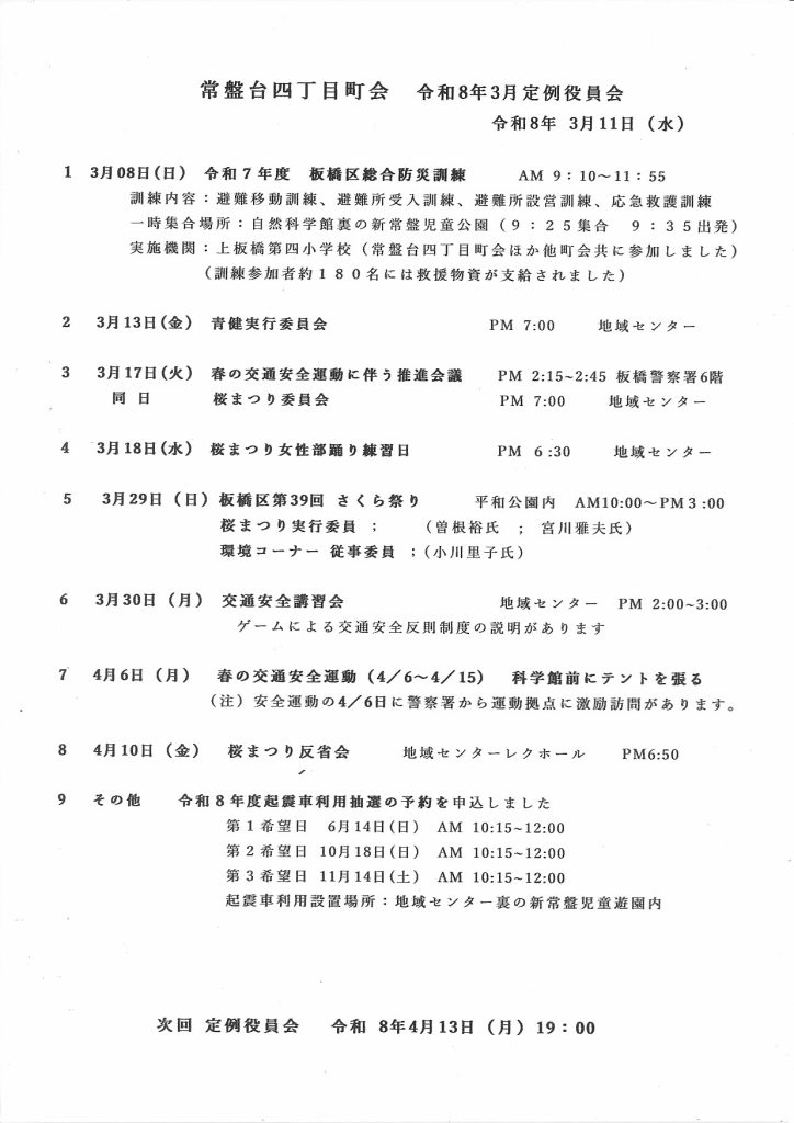 常盤台四丁目町会 3月定例会